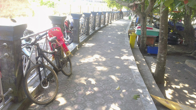 ~8:45 Bike to the surfing beach. My bike had a child seat. Everyone laughed at it.