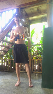 ~8:30am: Get ready for morning surf. This mostly involved applying sun lotion. I also filled my water bottle.